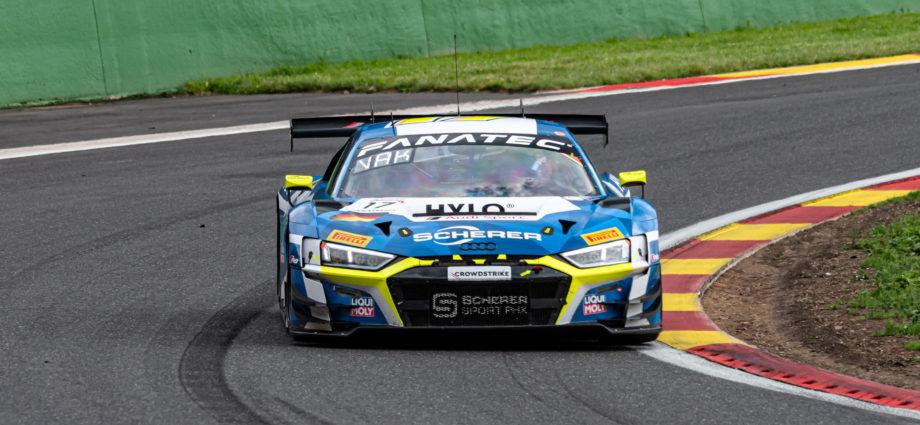 De #12 Comtoyou Racing Audi van Loris Hezemans, Sam Dejonghe, Finlay Hutchison en Lucas Légeret nam na drie uur racen de dertiende positie is en was leider in Silver.