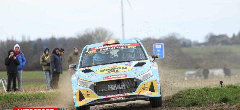 Heel even leek het alsof we een mooi duel tussen Potty en Cherain zouden krijgen, maar na een kleine fout van de Citroën-rijder in de derde proef kon Cherain een kloof slaan en die lijkt de Hyundai-rijder zeer goed te controleren, al zijn de omstandigheden erg verraderlijk. Ondanks de regen en de modder viel er in de eerste helft van de rally vooraan maar een echt slachtoffer, met name Kurt Boone (Ford Fiesta). Hij ging er behoorlijk af en diende op te geven. Tom Boonen (Skoda) kende ook een moeilijke start en volgt al op meer dan vier minuten van de leider. In R-GT leidt thuisrijder Kris Princen in zijn Porsche;