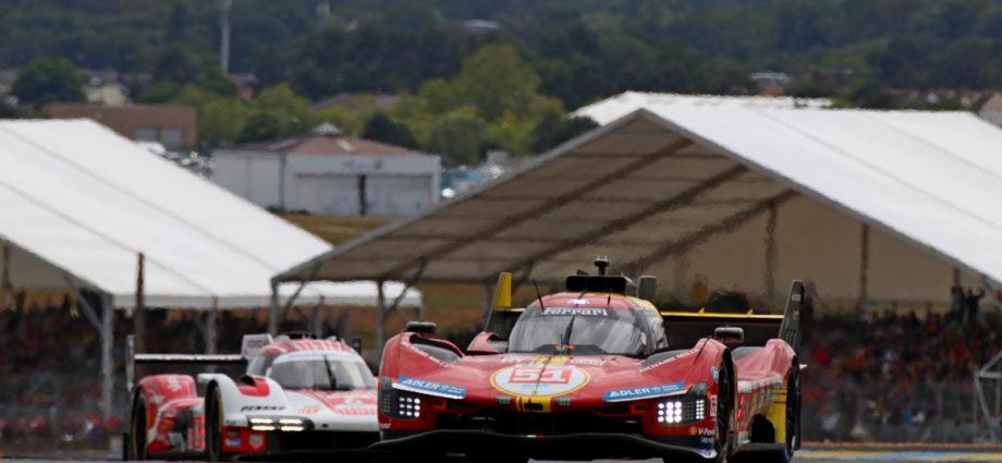 De AF Corse Ferrari van Kubica-Shwartzman-Ye leidde na drie uur racen de 92ste editie van de 24 Uur van Le Mans. De Ferrari 499P, die iets later een pitstop maakte, telde voor deze stop een voorsprong van 1 minuut en 20 seconden op de Toyota van Buemi. Michael Christensen lag met zijn Porsche op de derde plaats, en had al een pitstop afgewerkt. Na anderhalf uur trok een regenbui over het circuit waarbij een deel van de deelnemers voor regenbanden opteerde en dat legde de race in een eerste plooi. Porsche maakte voor de dan leidende #6 Porsche van Lotterer-Vanthoor-Estre de verkeerde keuze.