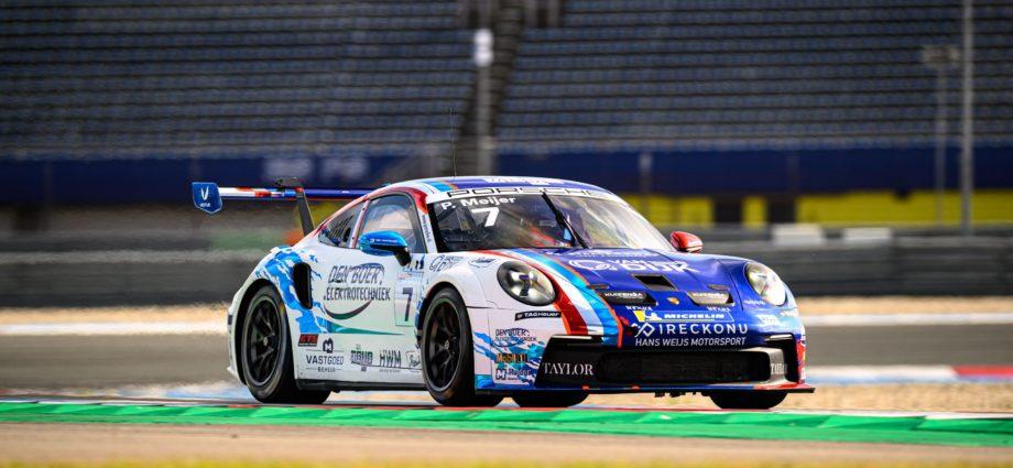 In het Noord-Nederlandse Assen is de vierde meeting van de Porsche Carrera Cup Benelux gestart met de vrije trainingen op vrijdag. De leider in de puntenstand voor Assen, Paul Meijer (Hans Weijs Motorsport), was ’s ochtends de snelste en hij deed dat nog eens over in de namiddag, telkens voor gastrijder Wouter Boerekamps (PG Motorsport). Benjamin Paque (D’Ieteren Luxury Performance) en Larry ten Voorde (JW Raceservice) verdeelden de derde plaatsen. Domas Raudonis (Team GP Elite) was tweemaal de beste ‘rookie’ en Hans Weijs Junior (Hans Weijs Motorsport) deed hetzelfde in de klasse ‘Pro-Am’. Morgen, zaterdag, staan de kwalificaties en de eerste race op het programma, zondag wordt er in Assen een tweede maal geracet. (Foto: Ivan Tarantsov)