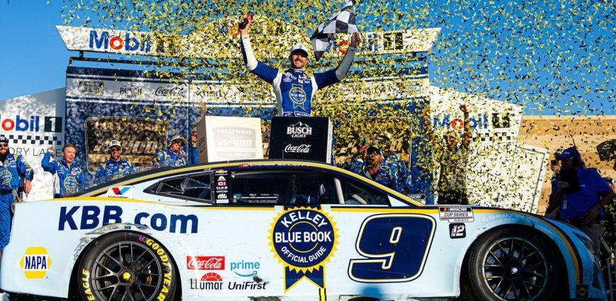 Bij de laatste herstart op twee ronden van het einde lag Chase Elliott in achtste positie. Alles wees erop dat een van de dominerende Toyota-rijders de zege ging wegkapen. Denny Hamlin (#11, Joe Gibbs Racing), Christopher Bell (#20, Joe Gibbs Racing), Chase Briscoe (#19, Joe Gibbs Racing) en Bubba Wallace (#23, 23XI Racing) vochten een stevig gevecht uit, maar het was Elliott die hen allen de loef afstak en met amper 0,069 seconden voorsprong de meet haalde. Voor Hamlin, die meer dan de helft van de race aan de leiding reed, en Bell werd het plaatsen twee en drie. Briscoe, die z’n zevende pole van het seizoen liet noteren, eindigde vierde. Voor Chase Elliott is het de tweede overwinning van het seizoen, de 21ste van z’n carrière. Chevrolet boekte zijn eerste zege in zeven races. Deze zege garandeert Elliott een plek in de volgende playoffsronde. Nog noteren dat Australisch Supercars-kampioen en street course-specialist met vier overwinningen dit jaar Shane van Gisbergen (#88, Trackhouse Racing) z’n eerste top tien op een oval pakte.