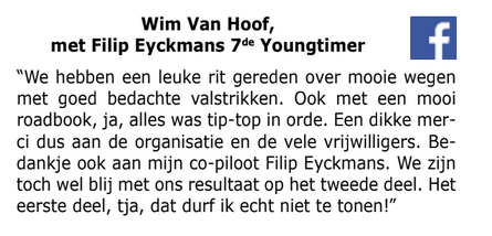 Het werd dus afwachten en rekenen na de finish. Het eindverdict viel zeer gunstig uit voor de thuisclub. Met Philip Copmans en Filip Beyers op de Opel GT als winnaars, en met Robby Walschaers en Eddy Tips op de Toyota Celica als tweede in het algemene klassement, scoorde CRRT een mooi dubbelzege in eigen huis. Op de derde plaats zagen we de winnaars van de vorige editie, Dirk Velghe en Geert Verdonckt. Copmans en Beyers werden ook de winnaars in de klasse Oldtimer. Op de vierde plaats ging de zege in de klasse Youngtimer naar de leiders van het eerste uur, Hendrik Jannis en Jonas Claes met de Abarth Competizione.