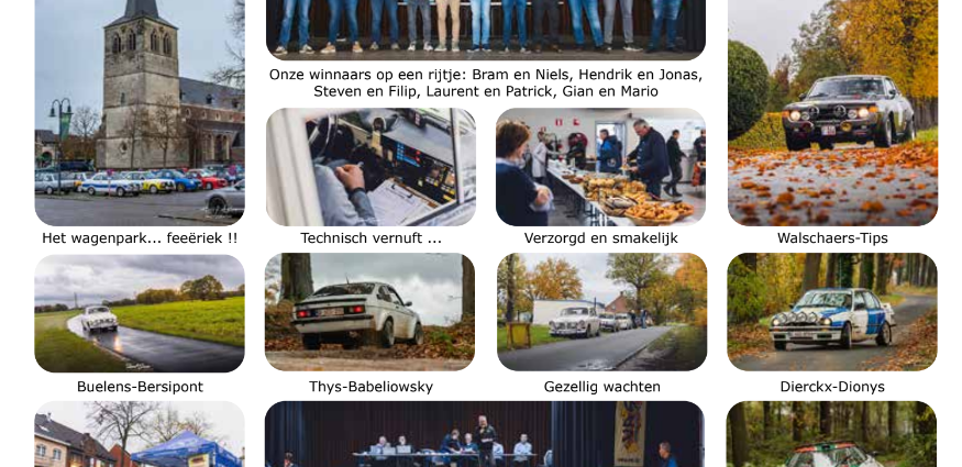 Het was Allerheiligen op zaterdag 1 november, en met dat gegeven had de organisatie wel rekening gehouden. Heel wat passages en controles hadden kerken of kapelletjes in de buurt. Het vertrek was er uiteraard in Bocholt, waar de statige Sint-Laurentiuskerk boven het Kerkplein uit torent. Maar wie er oog voor had, die zag ook de controle aan de kapel van Maarlo, de start van de proef aan de gerenoveerde Brueghel kapel en verder nog passages aan de Dullerkapel in de buurt van Peer, de Onze-Lieve-Vrouwekapel aan de Helchtersedijk en zelfs twee “religieuze”-passages in Hechtel-Eksel met de kapellen aan de Wielewaalstraat en de Kenensdijk. De Moustache Classic, dat is vooral een uitdagende wedstrijd, opgezet door het ervaren “Rally Team Moustache” en dus kon het amper anders dan dat de wedstrijd uitblonk op alle vlakken: medewerkers, administratie, controles… alles verdiende een dikke pluim!