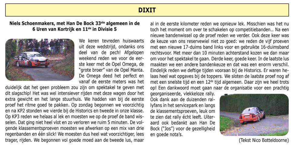 Geen noemenswaardige problemen over de twee dagen van de rally, een deelnemersveld om U tegen te zeggen, naarschatting ruim 10.000 toeschouwers en twee avonden volop ambiance en sfeer op de Grote Markt van Kortrijk… Wat kan een organisator zich nog meer wensen? Jos Verstappen (Citroën C3 Rally2), genavigeerd door onze ervaren landgenoot Renaud Jamoul, bewees op de Lavano-opningsproef zaterdagavond onmiddellijk waarom hij al enkele jaren bij de top hoort van het BK rally. Jos “The Boss” zette meteen een knaltijd op de tabellen en daarmee wist de concurrentie alvast waar ze aan toe waren.