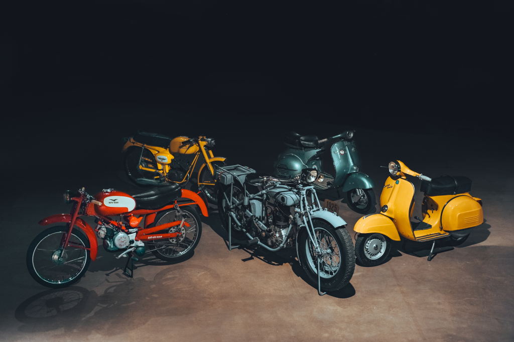 Directeur van Squadra Abarth & Rally Collection, Cosmo De Candia: “We stelden de tentoonstelling helemaal zelf samen, door op zoek te gaan naar private verzamelaars die vaak zeldzame motoren in hun collecties hebben. Dikwijls leiden die een anoniem bestaan. Maar wij zetten de pronkstukken voor iedereen in de spotlights. Er zullen meer dan 70 modellen te zien zijn. Bij de Italiaanse motoren zijn dat: Ducati, Piaggio, Moto Morini, Moto Guzzi, Mv Agusta, Motobi, Maserati en Laverda. En als Belgische motoren hebben we Vespa door M.I.S.A. (Brussel), FN, Lady, Sarolea, Gillet, Royal Nord en Flandria.”