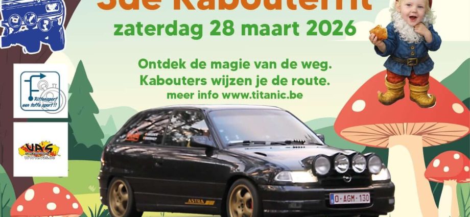 Op zaterdag 29 maart is er de Kabouterrit, een wedstrijd ingericht door R.T. Titanic Kasterlee vzw. De rit is de openingsmanche van het regionale kampioenschap (VAS) Rittensport. Deze derde editie wordt in 2026 gereden over het grondgebied van Kasterlee, Geel, Olen en Westerlo