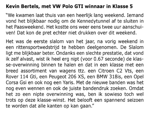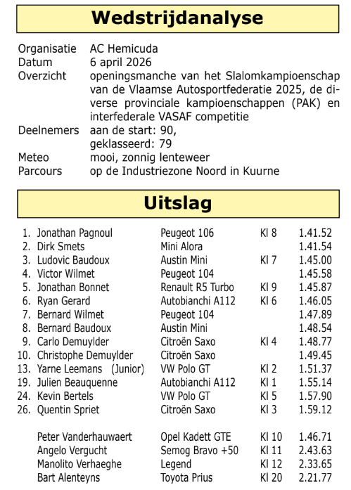 Op Paasmaandag was er de Slalom van Kuurne en dus de openingsmanche van het VAS regionale kampioenschap in de discipline. Het werd een mooie editie waarin Jonathan Pagnoul eindwinnaar werd na vier reeksen.