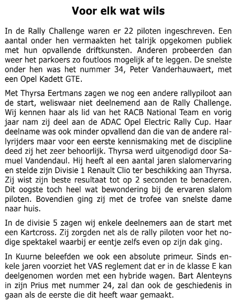 Jonathan Pagnoul maar Baudoux en Ryan Gerard kwamen ook aansluiten. Opvallend was regerend kampioen Jos Bronckaert, die met de Renault Clio JBR, tot zijn eigen verwondering, twijfels en frustratie, zijn draai niet vond en in alle reeksen een poortje raakte. Hierdoor kwam hij uiteindelijk niet verder dan een 27ste plaats…