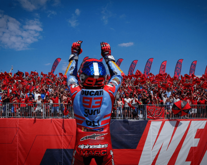 Marc Marquez pakte voor Gresini Ducati de zege in de MotoGP van San Marino op het circuit van Misano. Hij deed dat in omstandigheden die hem op het lijf waren geschreven. (foto: © motogp.com) Marquez voelde zich als een vis in het water in de wisselende weersomstandigheden op Misano. EenLees verder
