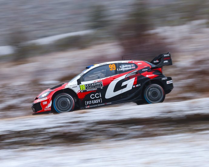 Ook na twaalf proeven blijft Oliver Solberg de Rally van Monte-Carlo leiden. De Zweed heeft voor de verbinding naar Monaco meer dan een minuut bonus op zijn dichtste achtervolger, Toyota-teamgenoot Elfyn Evans. Vanavond staat nog een korte showproef in Monaco op het menu. Foto: Toyota Als we ooit één rallyLees verder