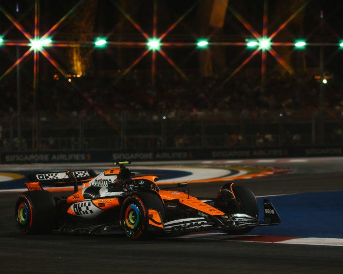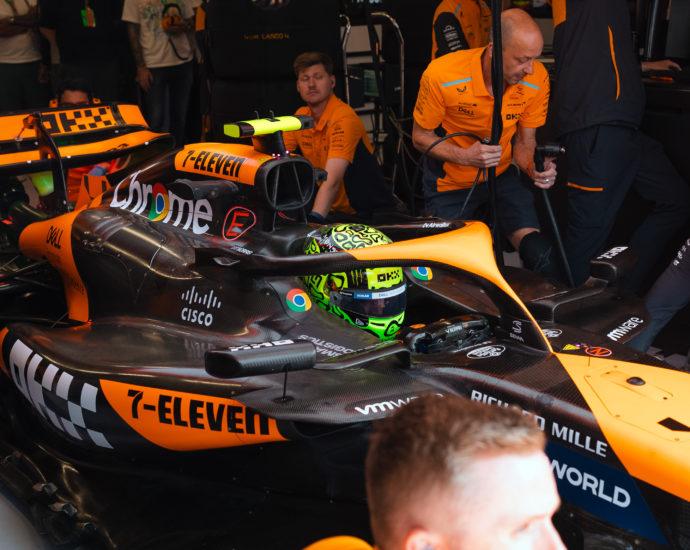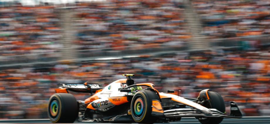 Lando Norris (McLaren) start vanop pole na een spannende kwalificatie in Austin, waar George Russell (Mercedes) crashte in Q3. Lewis Hamilton (Mercedes) ging er al verrassend uit in Q1. Max Verstappen (Red Bull) en Carlos Sainz (Ferrari) starten achter Norris op de grid en vervolledigen de top drie. Foto: McLarenLees verder